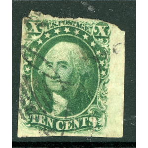 USA 1859 Washington 10¢ Yellow Green Type III Scott #15 VFU U963