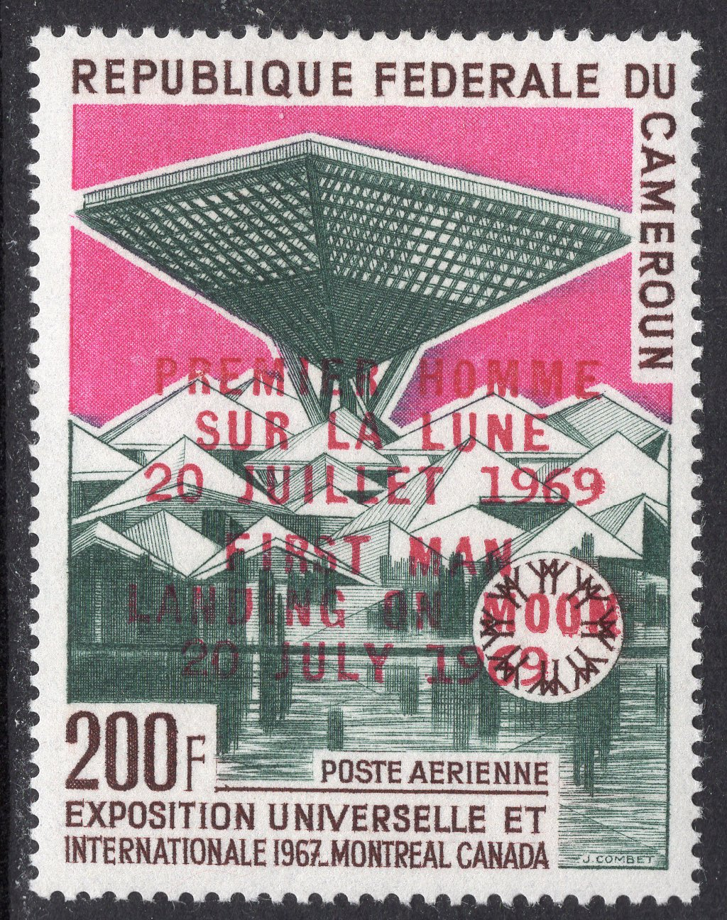 Cameroun Scott C94. Unused. With 1969 Moon Landing overprint.
