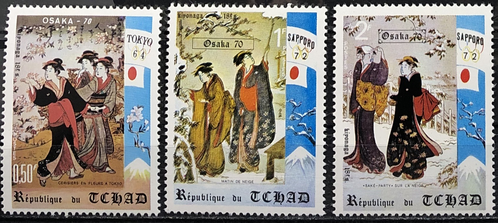 1972 Winter Olympics, Sapporo. Paintings by Kiyonaga. Complete set of 3.