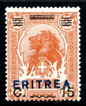 Italy 1924 Colony ERITREA 15¢/2a Blue OP Lion Scott #84 MNH T654
