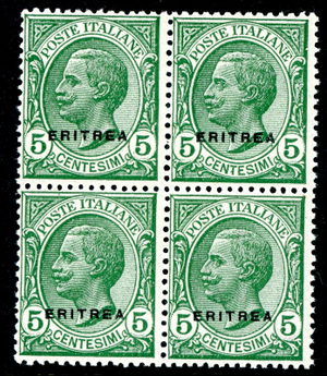 Italy 1924 Colony ERITREA 5¢ Green Block of 4 Scott #90 MNH T550