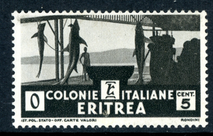 Italy 1934 Colony ERITREA 5¢ Black Shark Fishing Scott 159 MNH T772