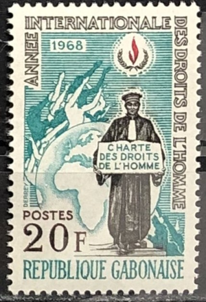 Lawyer, globe and human rights flame, 1968. Single.