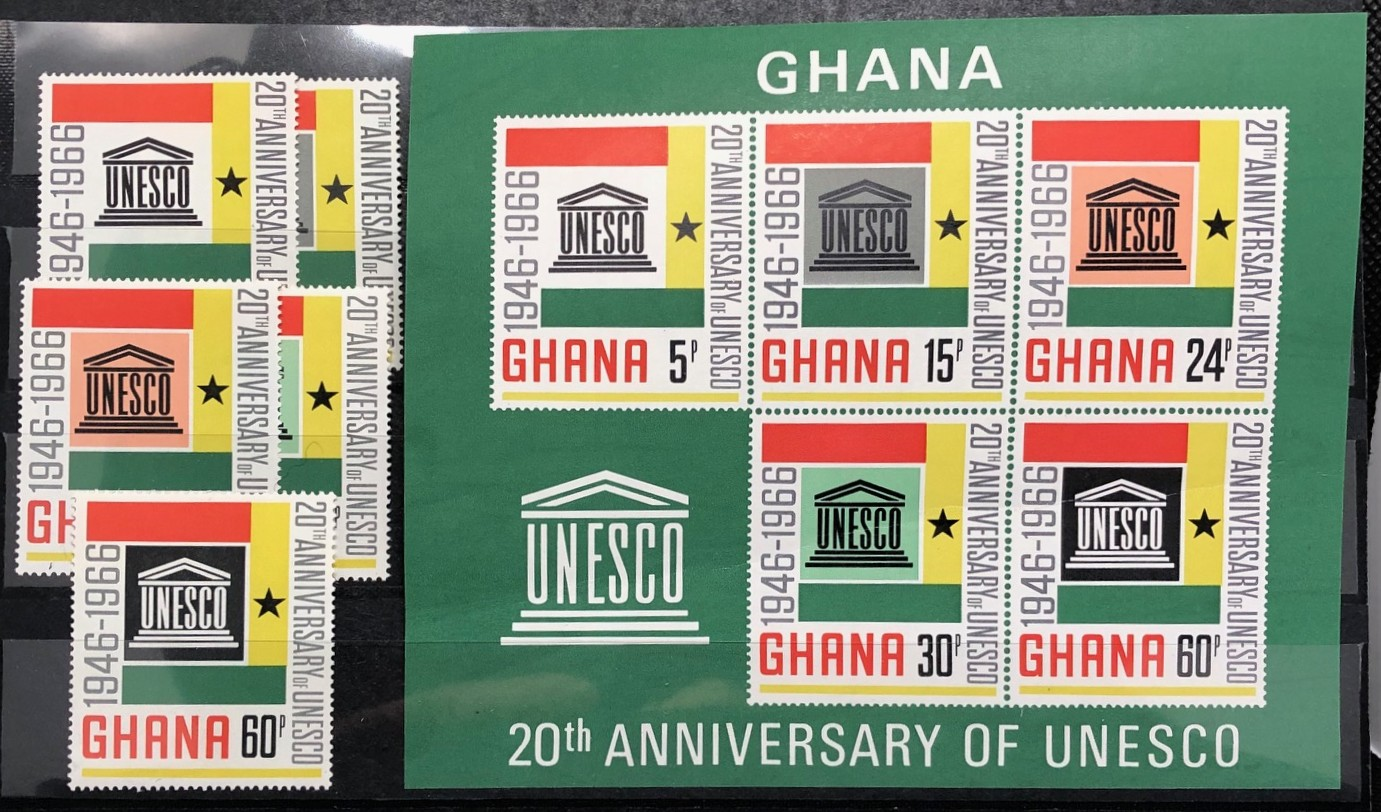 UNESCO, 20th anniversary, 1966. Complete set of 5 plus souvenir sheet.