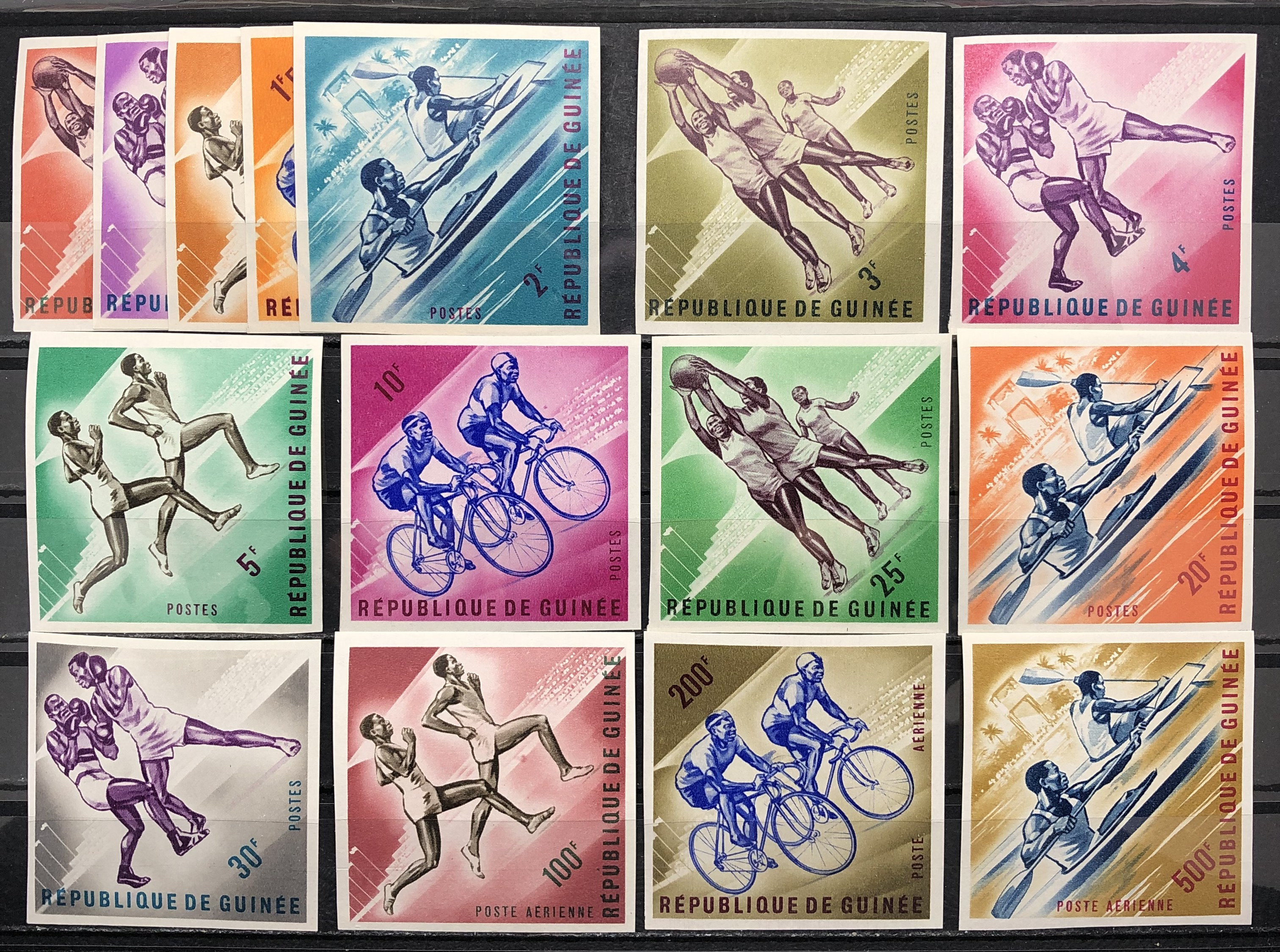Sports, 1963. Complete set of 15. Note: From late 1962 onward, most Guinea stamps exist imperf.