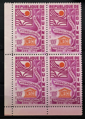 Symbolic water cycle and UNESCO emblem, 1966. Block of 4.