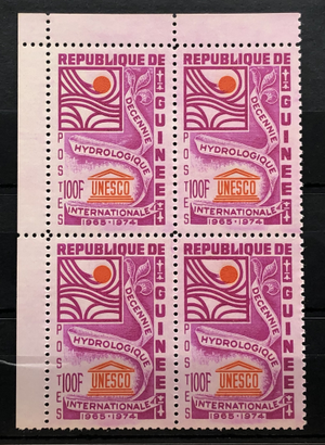 Symbolic water cycle and UNESCO emblem, 1966. Block of 4.