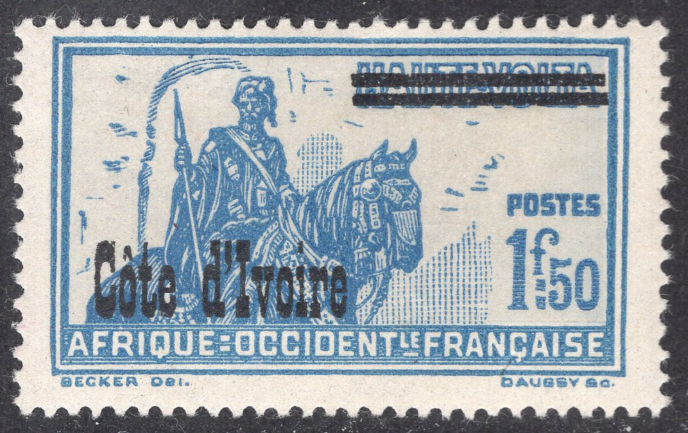 Ivory Coast Scott 109. Unused. Very trivial thin.