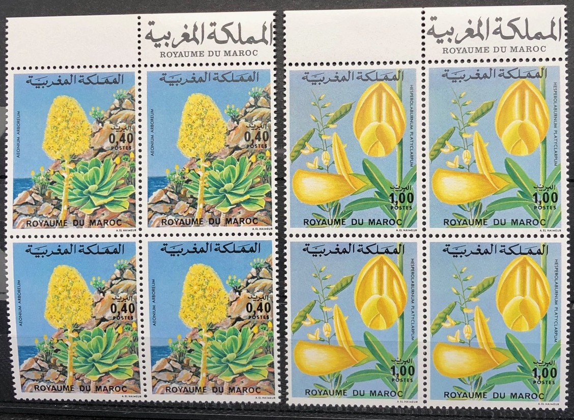 Flowers, 1977. 2 blocks of 4, short set.
