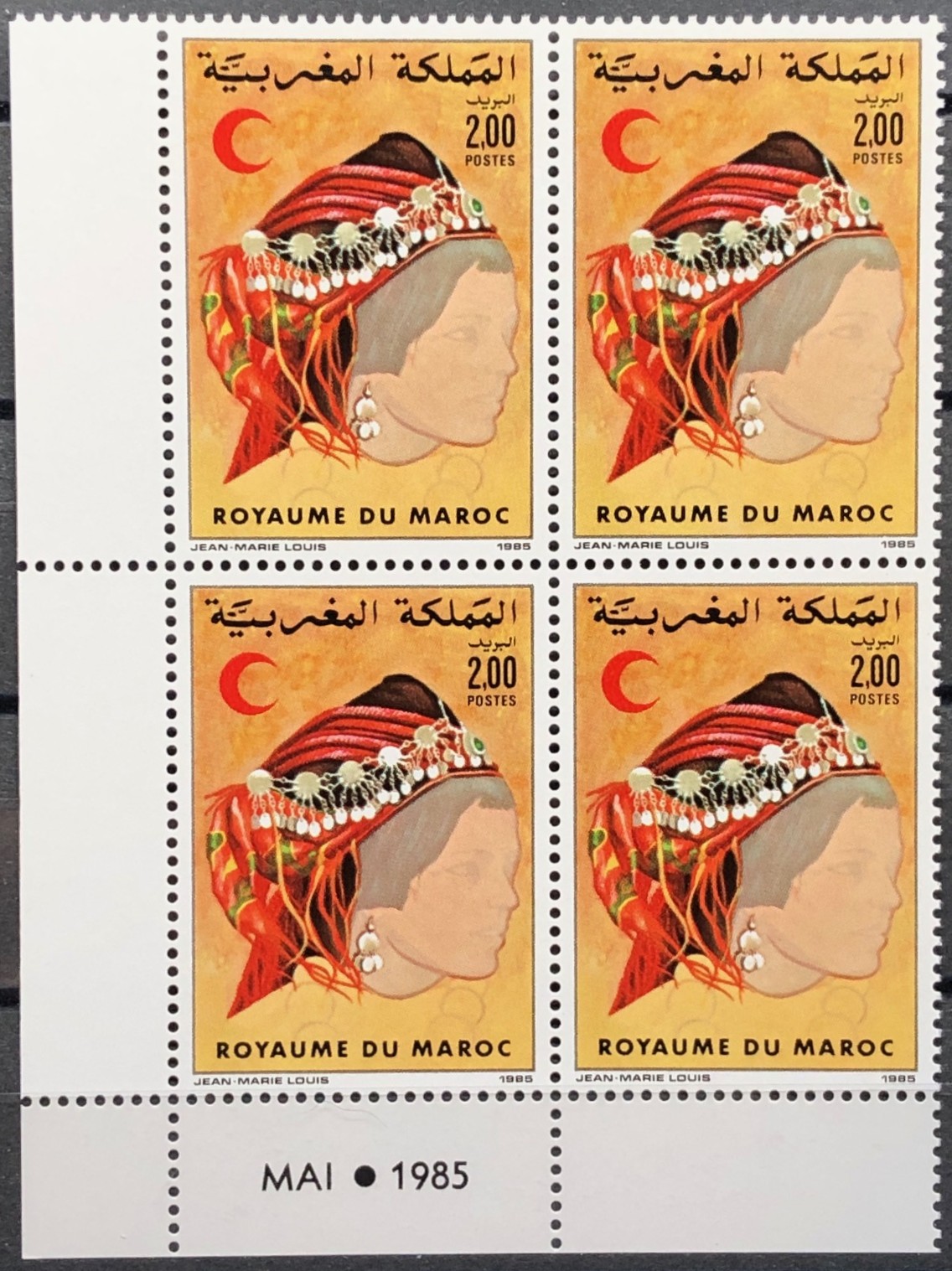 Red Crescent/Berber Woman, 1985. Block of 4.