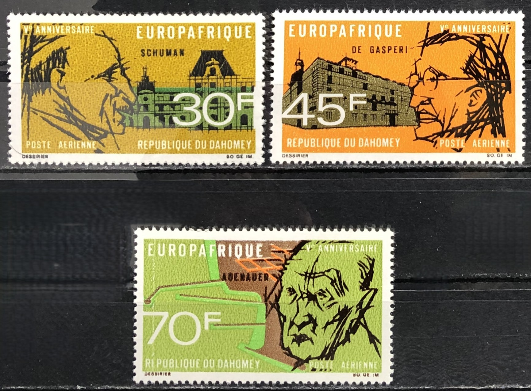 5th anniversary of the economic agreement between the European Economic Community and the African and Malgache Union, 1968. Complete set of 3.*The item shown may be an example because two or more are in stock.