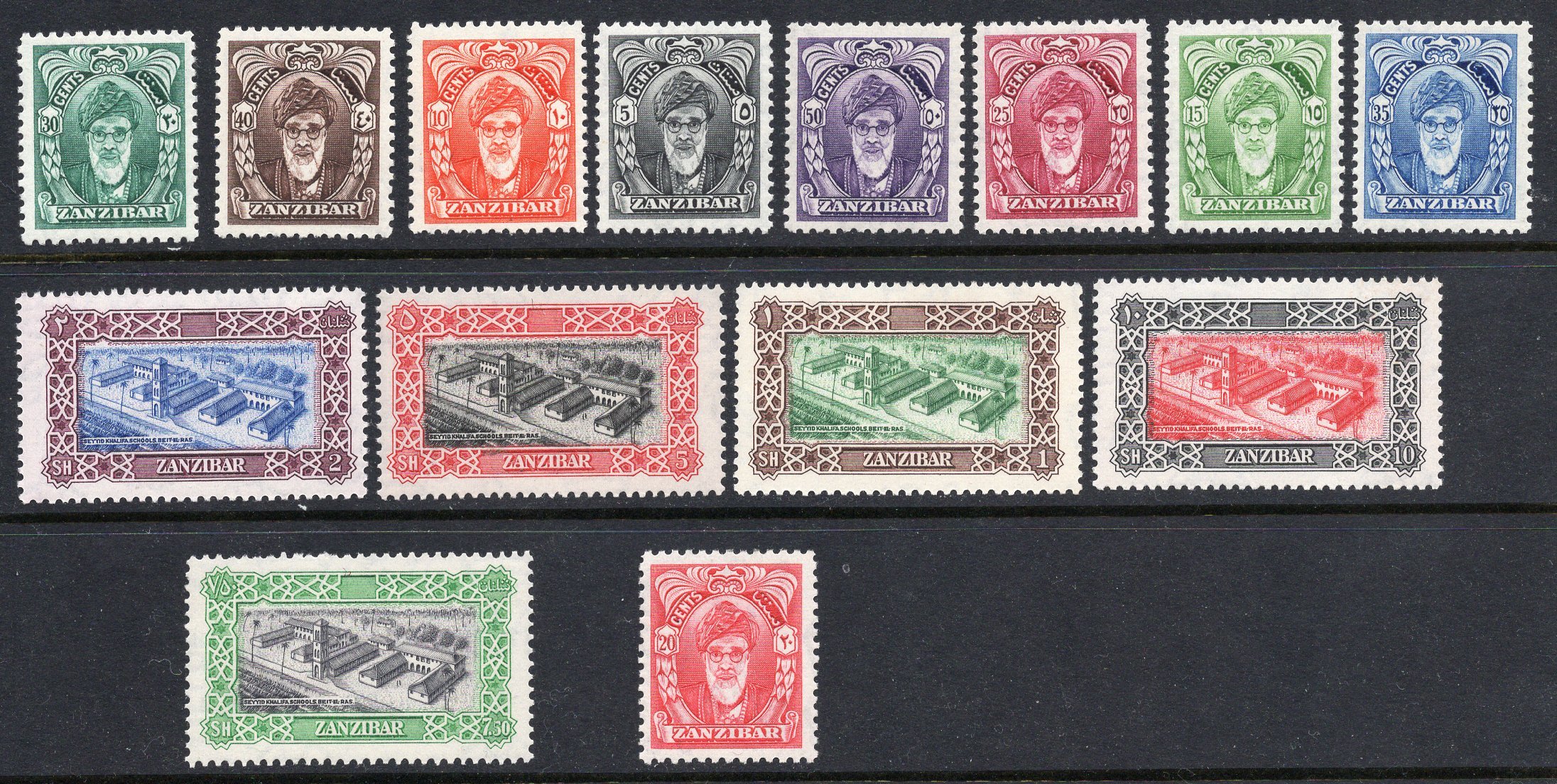 Zanzibar Scott 230-243. Complete set. Mint. Never hinged.