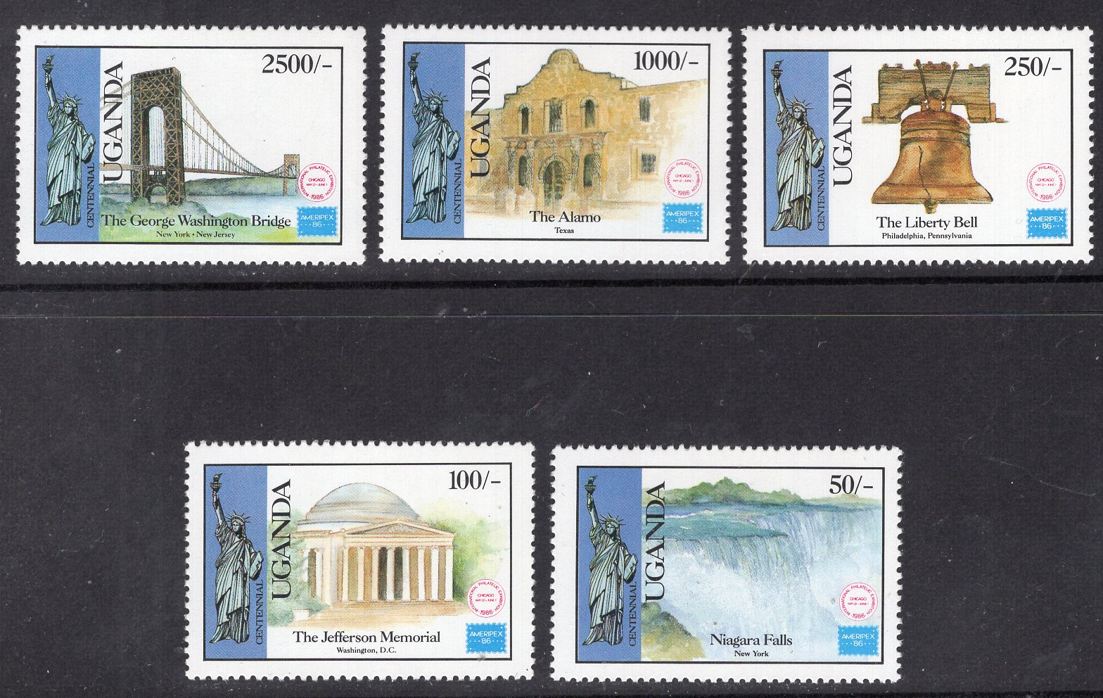 Uganda Scott 499-503. Complete set. Mint. Never hinged.