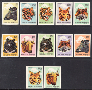 Bhutan Scott 56-67. Complete set. Mint. Never hinged. Disturbed gum.