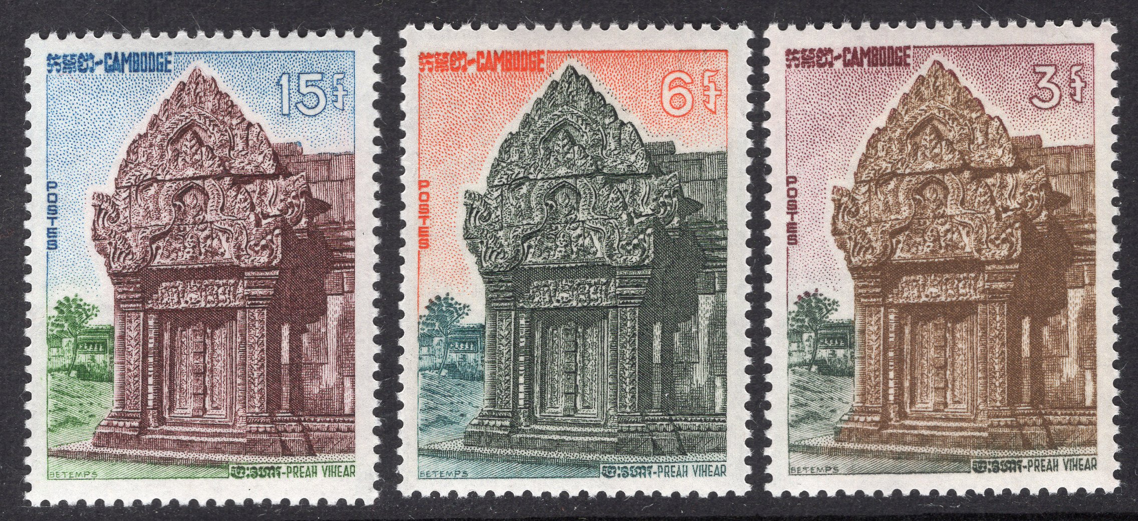 Cambodia Scott 119-121. Complete set. Mint. Never hinged.