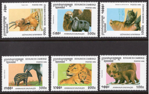 Cambodia Scott 1558-1563. Complete set. Mint. Never hinged. 1 tiny tear.