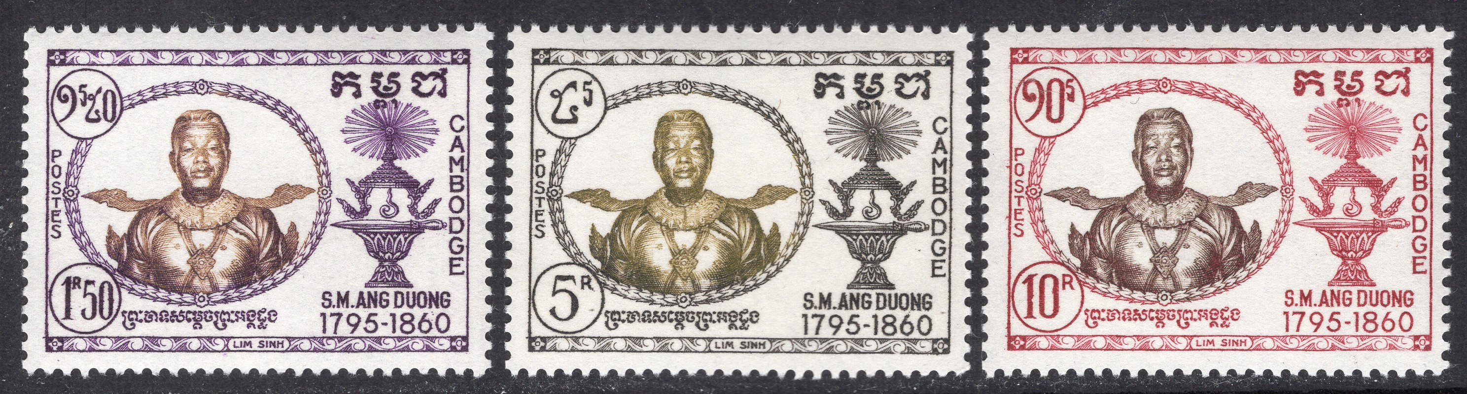Cambodia Scott 65-67. Complete set. Mint. Never hinged.
