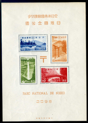 Japan 283a, 1938 Nikko National Park Souvenir Sheet with folder, MNH, Scott $140