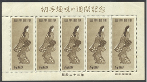 Scott #422a: 1948 5y Beauty Sheet Centering & Condition: Mint. Fresh. Very Fine sheet.. Reverse (Gum Side): Original gum. Never Hinged. Faults / Imperfections: None The item pictured is the actual item you are purchasing, unless otherwise noted. I also offer an interest-free layaway plan. Ask me about it!" All items will be mailed a day or two after payment is received. ![]() ![]() ![]() --------------------------------------------------------------------------------