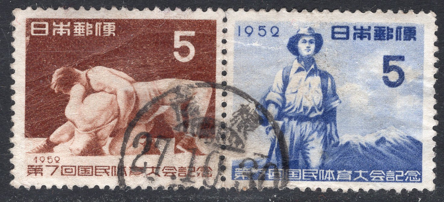 Japan Scott 568A. Pair. Used. Tear. Large thin.