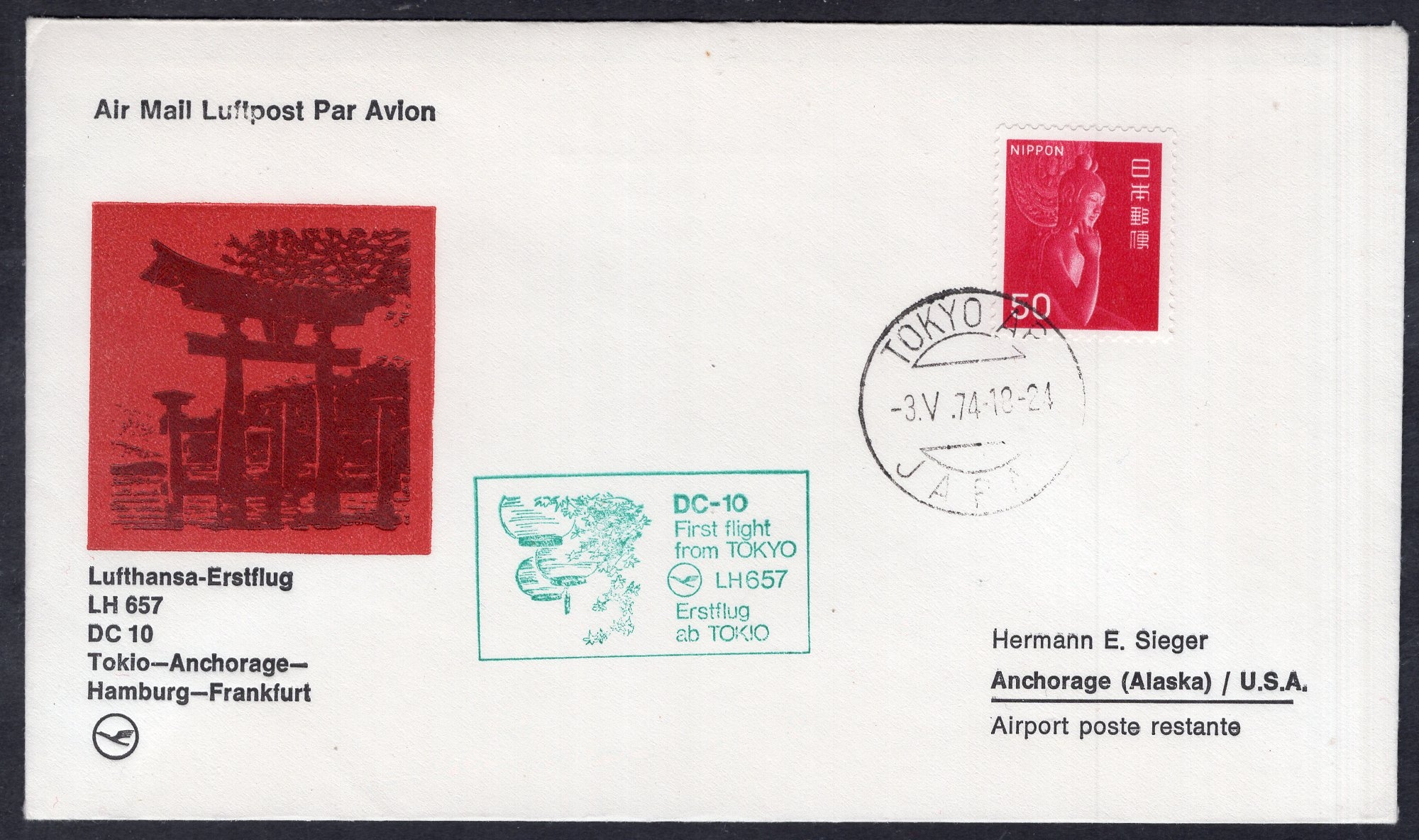 Japan Scott 885. Event cover. DC10 1st flight from Tokyo. 5