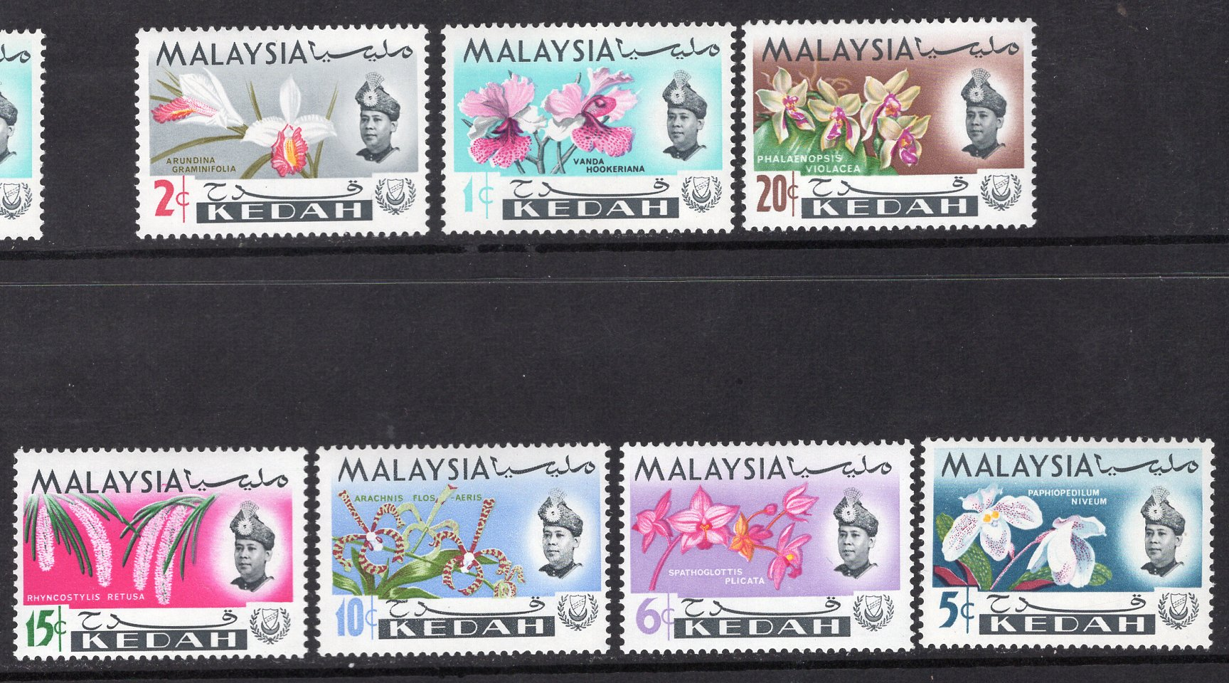 Malaysia-Kedah Scott 106-112. Complete set. Mint. Hinged.