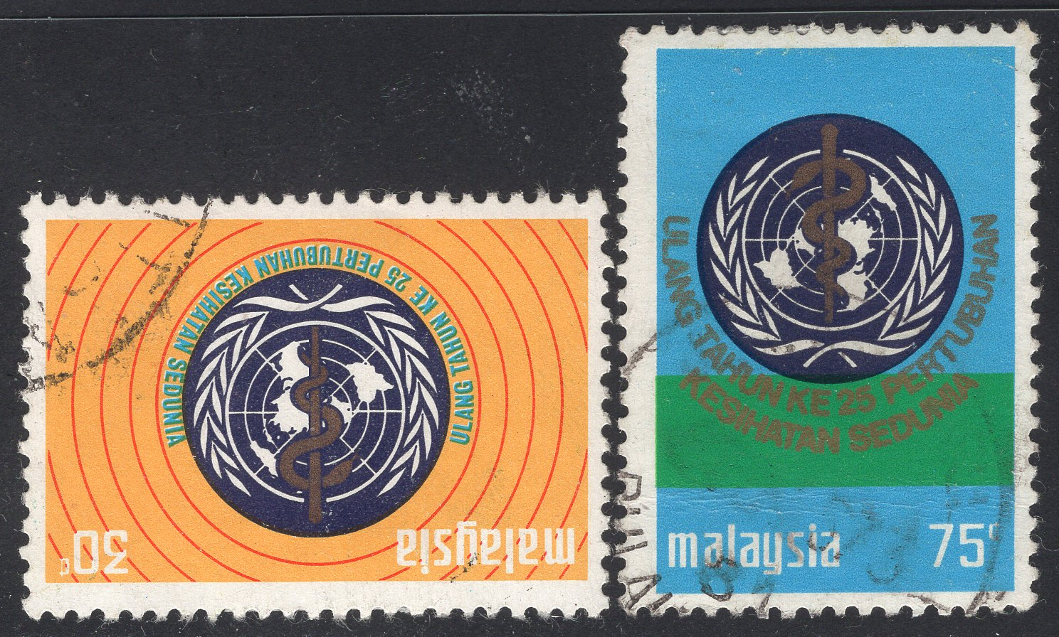 Malaysia Scott 101-102. Complete set. Used. Crease.
