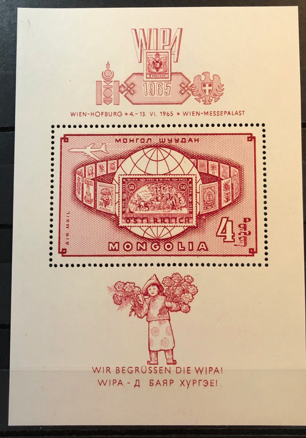 Vienna International Philatelic Exhibition, Austria. Austrian and Mongolian stamps around the world, 1965. Souvenir sheet.