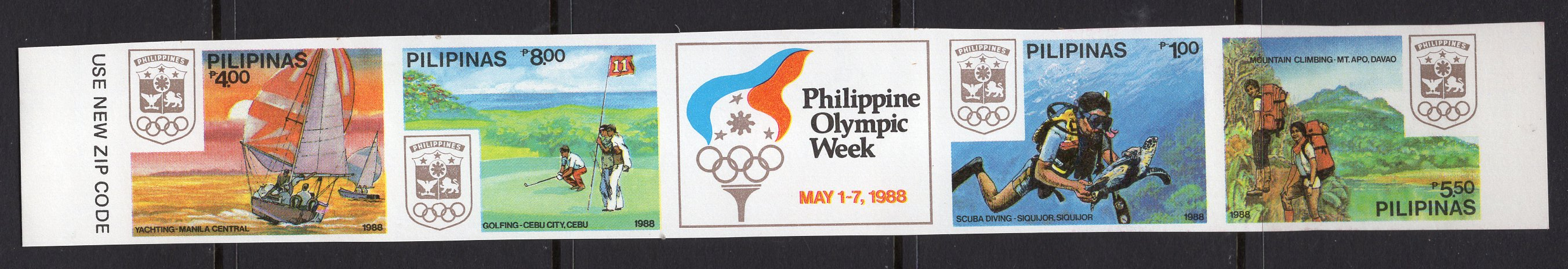 Philippines Scott 1933/1935/1936/1937. Strip of 4. Unused. Imperforated.