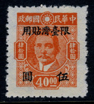 Free China 1946 Taiwan Forerunner $5/$40 Orange Central Trust SYS Mint U698