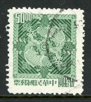 Free China 1965 Taiwan $50.00 Double Carp Sc # 1446 R257 ⭐⭐⭐⭐⭐⭐