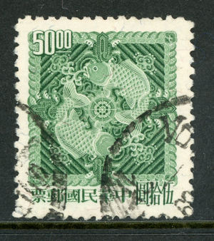 Free China 1965 Taiwan $50.00 Double Carp Sc # 1446 R258 ⭐⭐⭐⭐⭐⭐