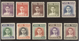 Scott #264-73: 1947 King Adulyadej Set Centering & Condition: Mint. Fresh. Very Fine Set. Reverse (Gum Side): Original gum. Never Hinged. Faults / Imperfections: None The item pictured is the actual item you are purchasing, unless otherwise noted. I also offer an interest-free layaway plan. Ask me about it!" All items will be mailed a day or two after payment is received. --------------------------------------------------------------------------------