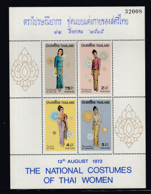 Thailand 632a, 1972 Thai Costume Souvenir Sheet, Mint NH, Scott $40