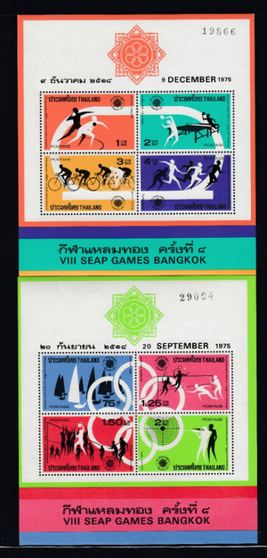 Thailand 756a, 777a, 1975 VIII SEAP Games Bangkok Sheets, Mint NH, Scott $60