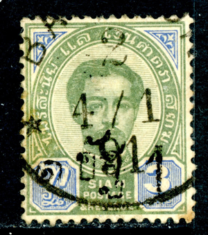 Thailand Stamps 1890 First Issues 1a/3a Green & Blue Scott #21 VFU H269