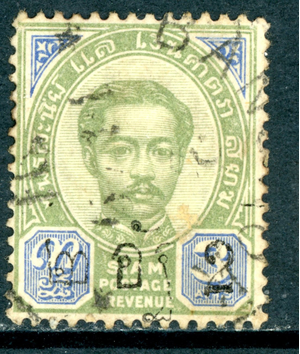Thailand Stamps 1891 First Issues 2a/3a Green & Blue Scott #28 VFU H273