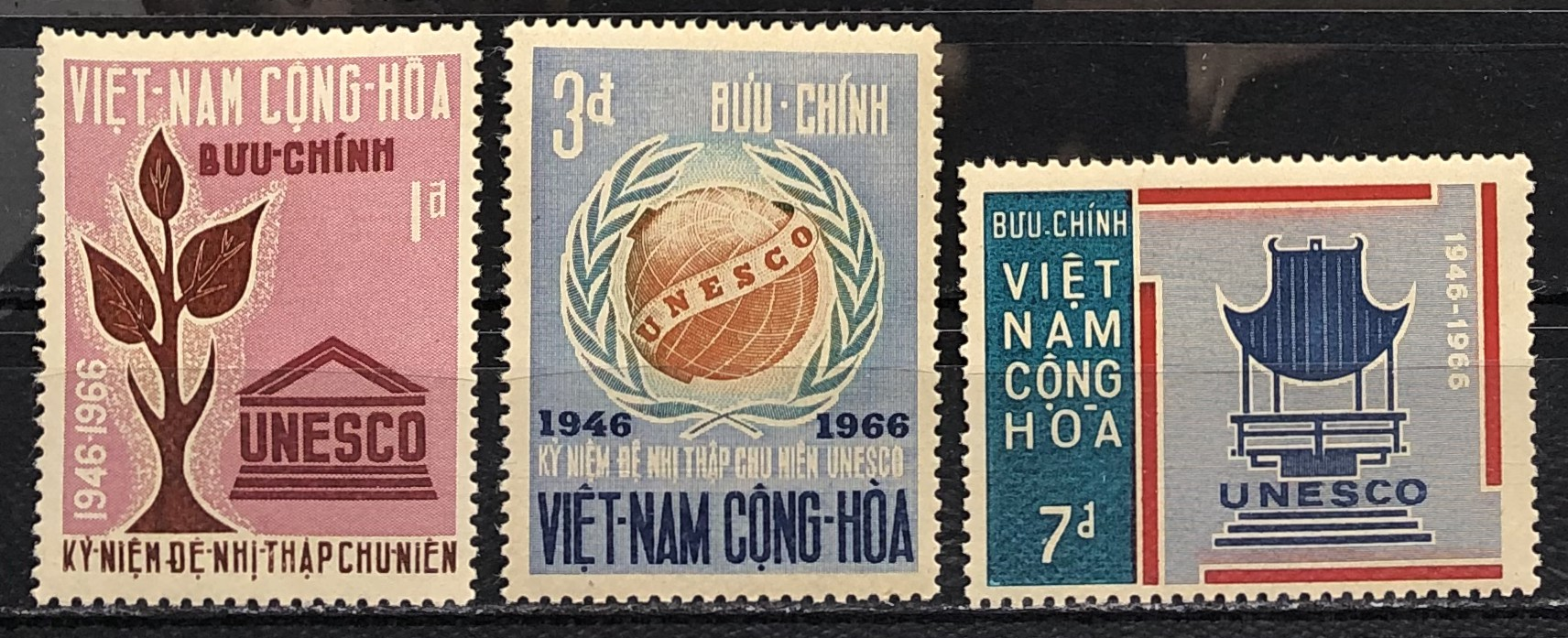 20th Anniversary of UNESCO, 1966. Complete set of 3.