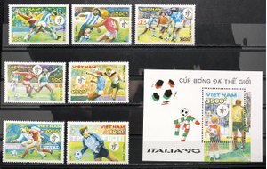 1990 World Cup Soccer Championships, Italy. Complete set of 7 plus souvenir sheet.