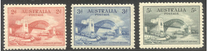 Scott #130-32: 1932 Sydney Bridge Set Centering & Condition: Mint. Fresh. Fine-Very Fine set. Reverse (Gum Side): Original gum. Never Hinged. Faults / Imperfections: None The item pictured is the actual item you are purchasing, unless otherwise noted. I also offer an interest-free layaway plan. Ask me about it!" All items will be mailed a day or two after payment is received. --------------------------------------------------------------------------------