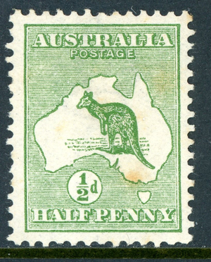 Australia 1913 Kangaroo ½p Green Roo SG #1 Mint T760