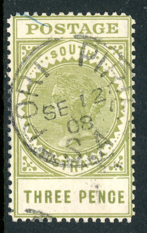 South Australia 1906 3p Sage Green Perf 12 SG #298 VFU S57