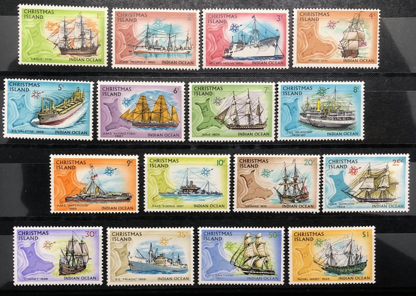 Ships and Map of Christmas Island, 1972-73. Complete set of 16.