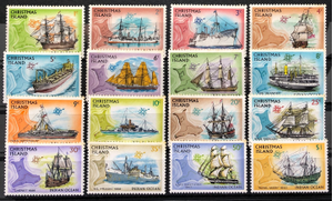 Ships and maps of Christmas Island, 1972-73. Complete set of 16.