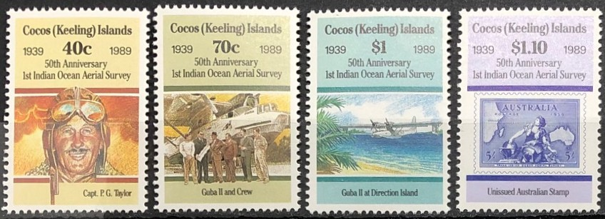 1st Annual Survey of the Indian Ocean Air Route, 50th Anniversary, 1989. Complete set of 4.