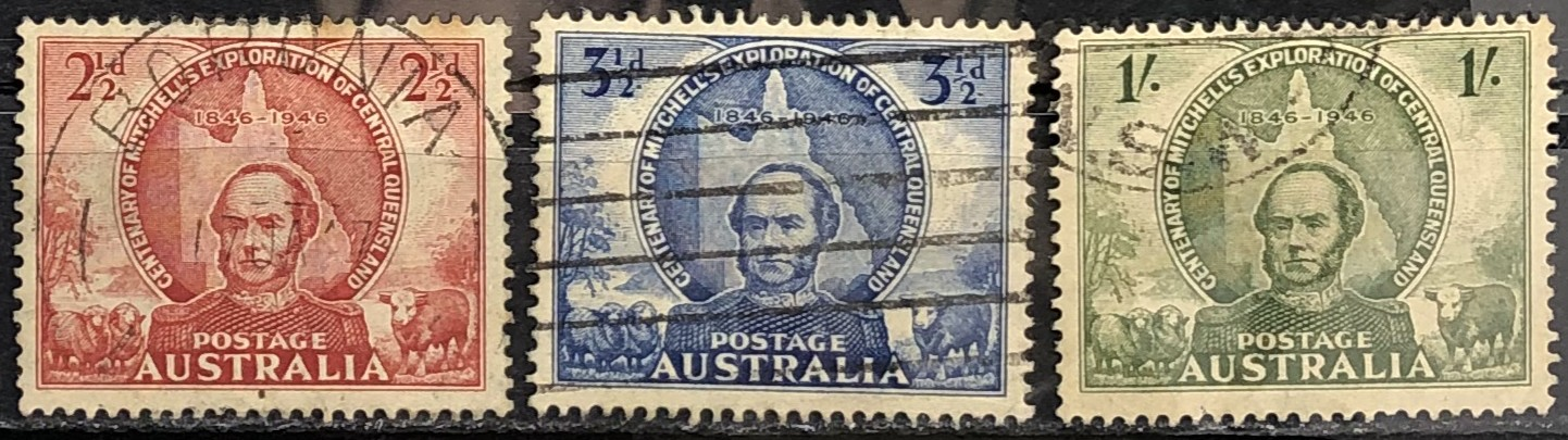 Sir Thomas Mitchell's exploration of central Queensland centenary, 1946. Complete set of 3.