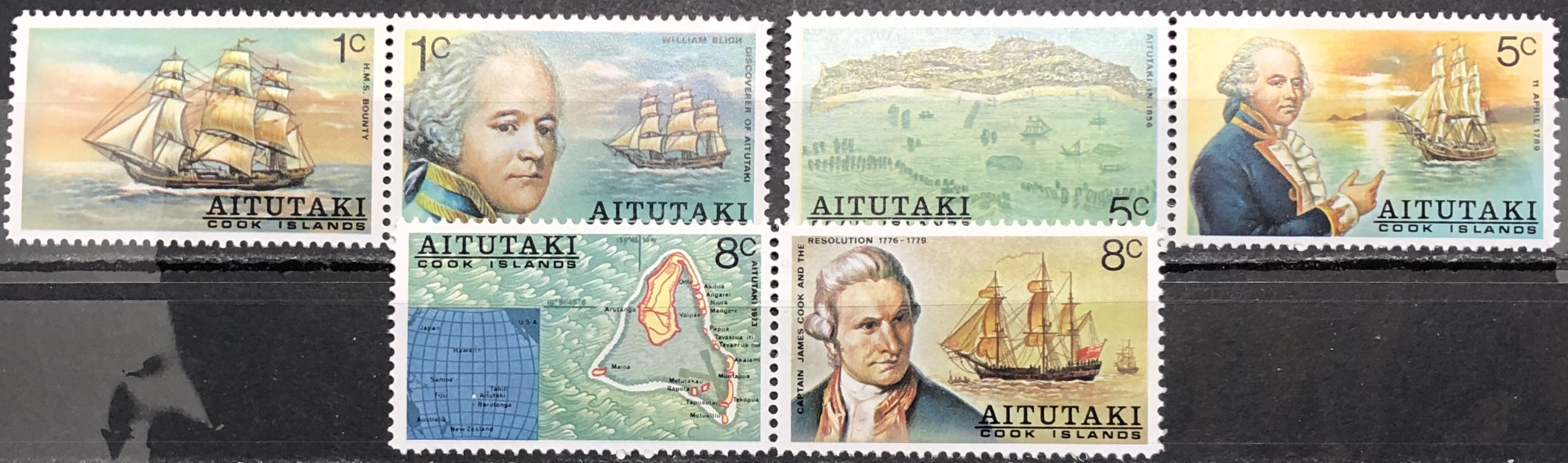 Captain William Bligh, European discoverer of Aitutaki, 1974. Three pairs.
