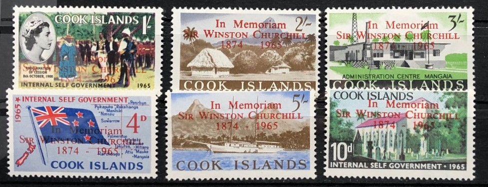 Overprint Memorial to Winston Churchill, 1966. Complete set of 6.