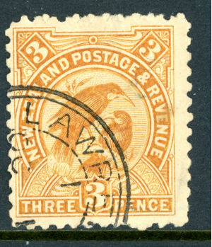 GANDALF - 1898 New Zealand 3p Yellow Brown SG #261 VFU Q522