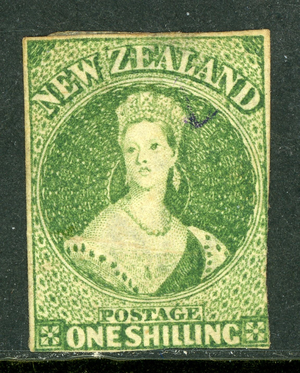 New Zealand 1862 QV 1' Yellow Green Watermarked 59 (NZ) Scott #30 Mint Q471